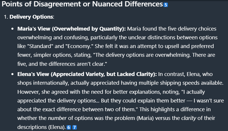 The same approach can be applied in consumer research, where differences in segments, such as first-time users or experienced customers, can shape how needs and frustrations manifest.
