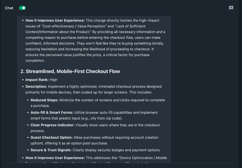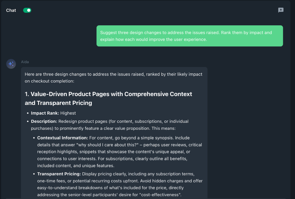 “Suggest three design changes to address the issues raised. Rank them by impact and explain how each would improve the user experience.”