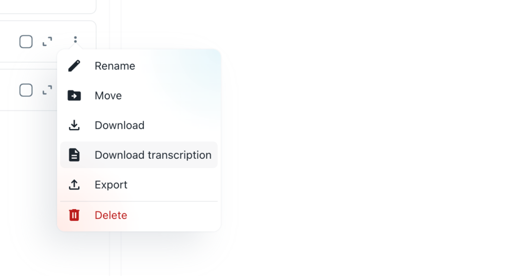 Recordings and transcripts stay inside the project level repository under the organisation’s retention settings, and nothing is stored outside the encrypted workspace. The user can choose how long they store their recordings. If they decide to delete files then they are soft-deleted and removed from the system within 28 days.